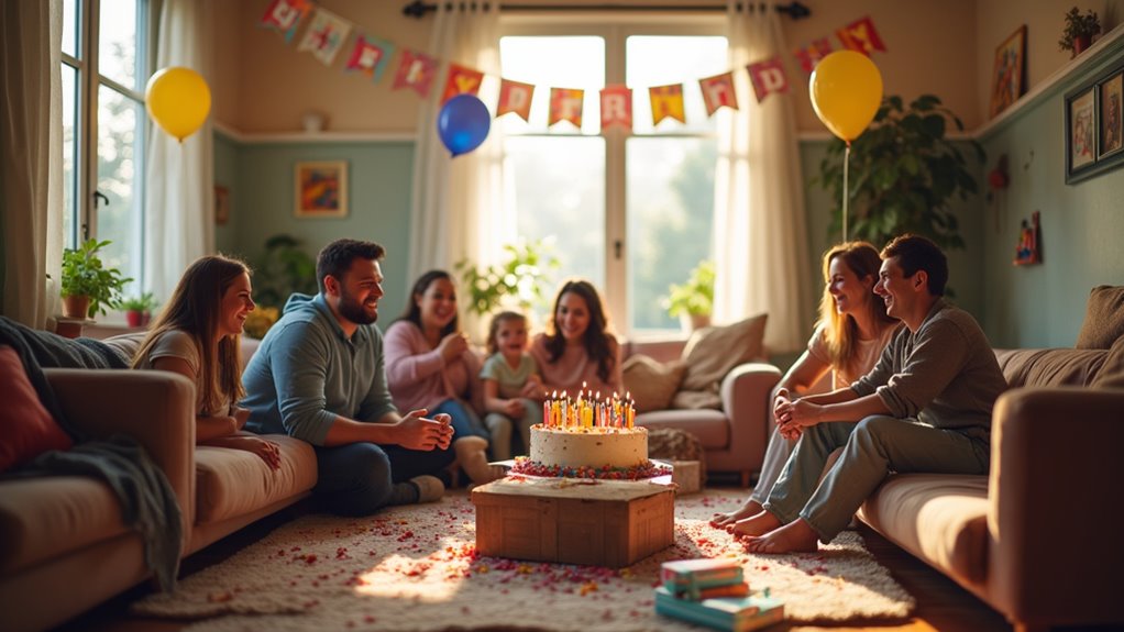 Sie bauen emotionale Anker auf, wenn Sie Geburtstagsrituale etablieren – weit wertvoller als jedes einzelne Geschenk. Forschungen zeigen, dass gemeinsame Traditionen die Familienidentität stärken und durch konsistente Erlebnisse bleibende Erinnerungen schaffen. Handgemachte Dekorationen, signierte Rezepte und absichtliche Feierlichkeiten zeigen den bedingungslosen Wert für die Person, die Geburtstag hat. Sie werden entdecken, dass bedeutungsvolle Momente keine hohen Ausgaben erfordern; die Verbindung ist das Wichtigste. Diese Praktiken werden zur geschätzten Familiengeschichte und werden an zukünftige Generationen weitergegeben. Die tiefere Bedeutung dieser Traditionen offenbart sich, wenn Sie erforschen, wie sie gewöhnliche Feiern in außergewöhnliche Vermächtnisse verwandeln.
