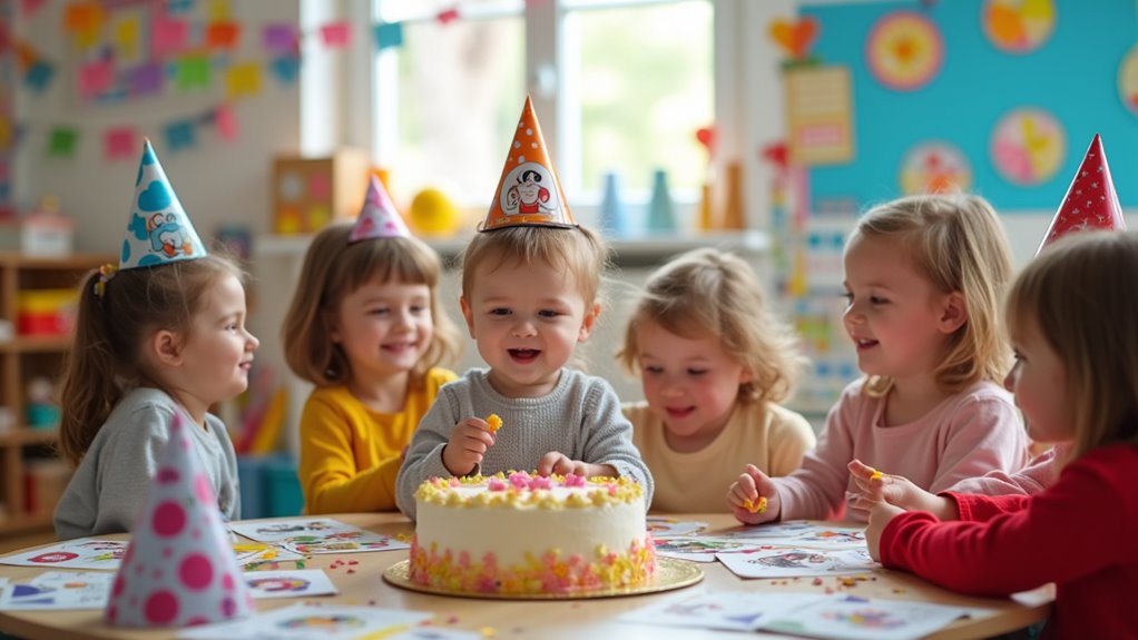 Sie sollten die Partydauer auf 45 bis 60 Minuten planen. Dieser Zeitrahmen hält die Kinder engagiert, ohne sie zu überfordern. Sie haben ausreichend Zeit für Feierlichkeiten wie Singen, Kuchen und Spielen. Kürzere Partys respektieren die Aufmerksamkeitsspannen und Energieniveaus der Kinder, sodass jeder Spaß hat. Sie schaffen bedeutungsvolle Momente, während Sie die Struktur der Klassenraumroutine aufrechterhalten. Dieser ausgewogene Ansatz unterstützt die Entwicklungsbedürfnisse der Kinder, während er ihren natürlichen Rhythmen Rechnung trägt.