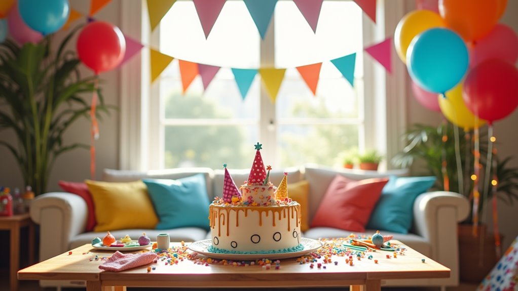 Sie werden eine unvergessliche Feier veranstalten, indem Sie einen Zeitplan von 2-3 Stunden mit Ankunfts-Eisbrechern, energiegeladenen Spielen, Bastelstationen und der Kuchenservice strukturieren. Verwandeln Sie Ihren Raum mit DIY-Dekorationen—Luftballons, Lichterketten und thematischen Bannern—während Sie klare Bereiche für Aktivitäten und Essen festlegen. Mischen Sie ansprechende Spiele wie Staffelläufe und Schatzsuchen mit beruhigenden Bastelstationen, um die Energieniveaus über die gesamte Veranstaltung hinweg auszubalancieren. Servieren Sie Snacks frühzeitig, um Meltdowns zu verhindern, und timen Sie die Übergänge strategisch mit einem Helfer, der den Ablauf verwaltet. Sie haben hier die wesentlichen Elemente, aber entdecken Sie spezifische Spielvariationen, Dekorationsideen und detaillierte Zeitplanstrategien, die Ihre Party von gut zu außergewöhnlich machen.